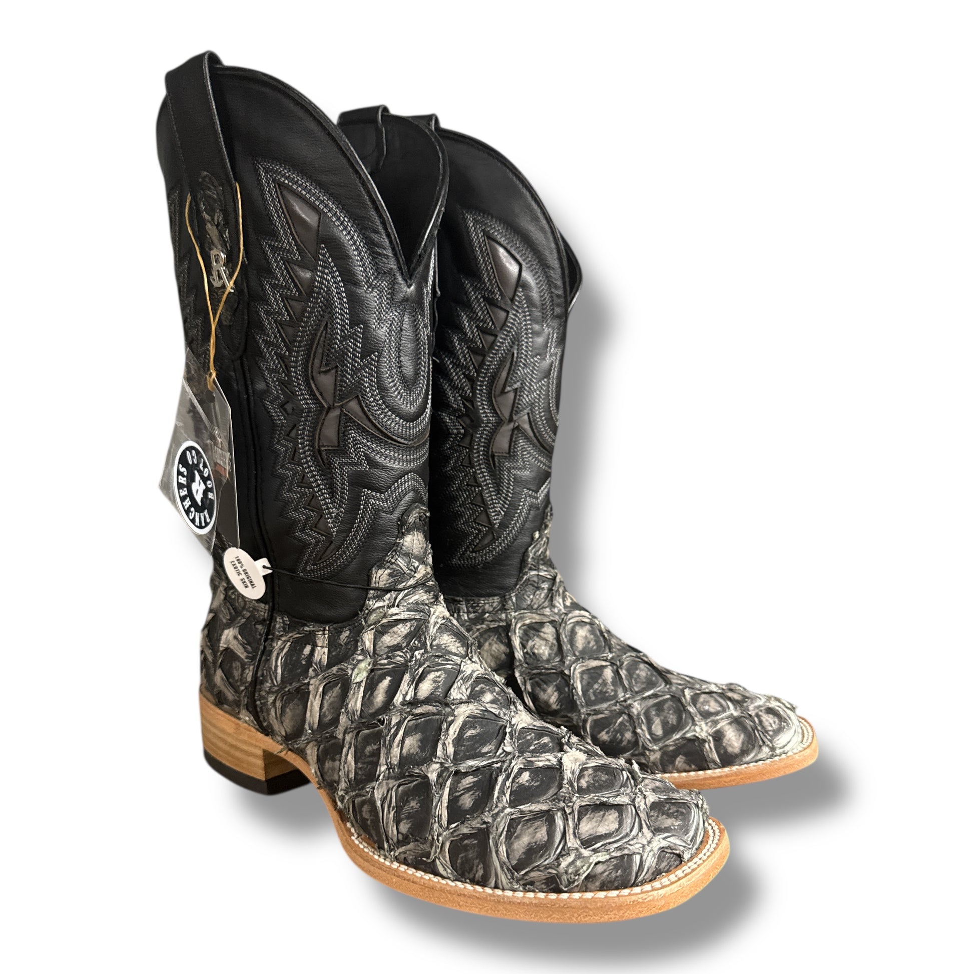 Crafted for those who appreciate rare materials and uncompromising quality, these boots are made from genuine pirarucu (arapaima) skin, one of the most distinctive and prestigious leathers in the world. Each pair showcases the natural, bold scale pattern of pirarucu, making every boot truly one of a kind.